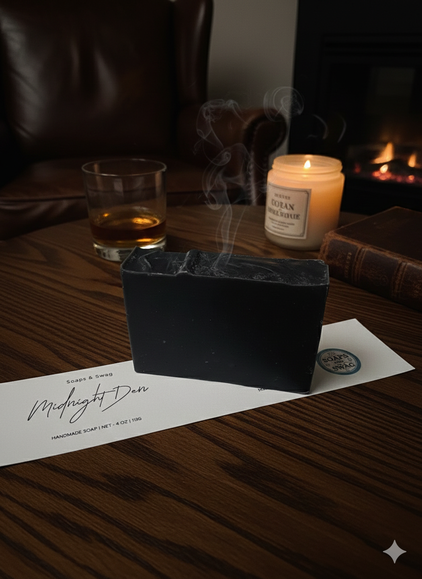 Midnight Den transports you to a sanctuary of calm with its rich, dark formulation. This black soap invites you to step away from the everyday and sink into a moment of pure indulgence. Crafted for those who crave a sensory escape, each use becomes a small ritual of self-care and restoration. Perfect for transforming your routine into a luxurious retreat.